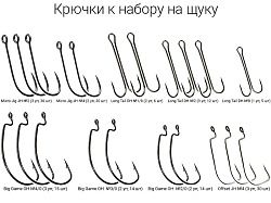 Оснащать одинарными крючками Round Bent Joint Hook №1, №2, Micro Jig Joint Hook №2 или офсетными Big Game Offset Hook №1/0, №2/0, Offset Joint Hook №1/0, №2/0.